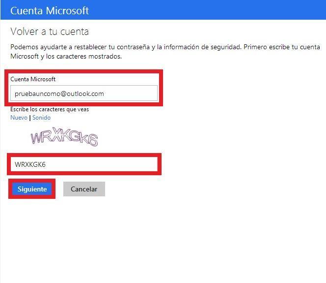 Agora simplesmente siga os passos e preencha os espaços indicados. Assim, insira sua conta Outlook, da qual quer recuperar a senha, e escreva os caracteres especificados. Depois, clique em 'avançar' para continuar com o processo de recuperação.