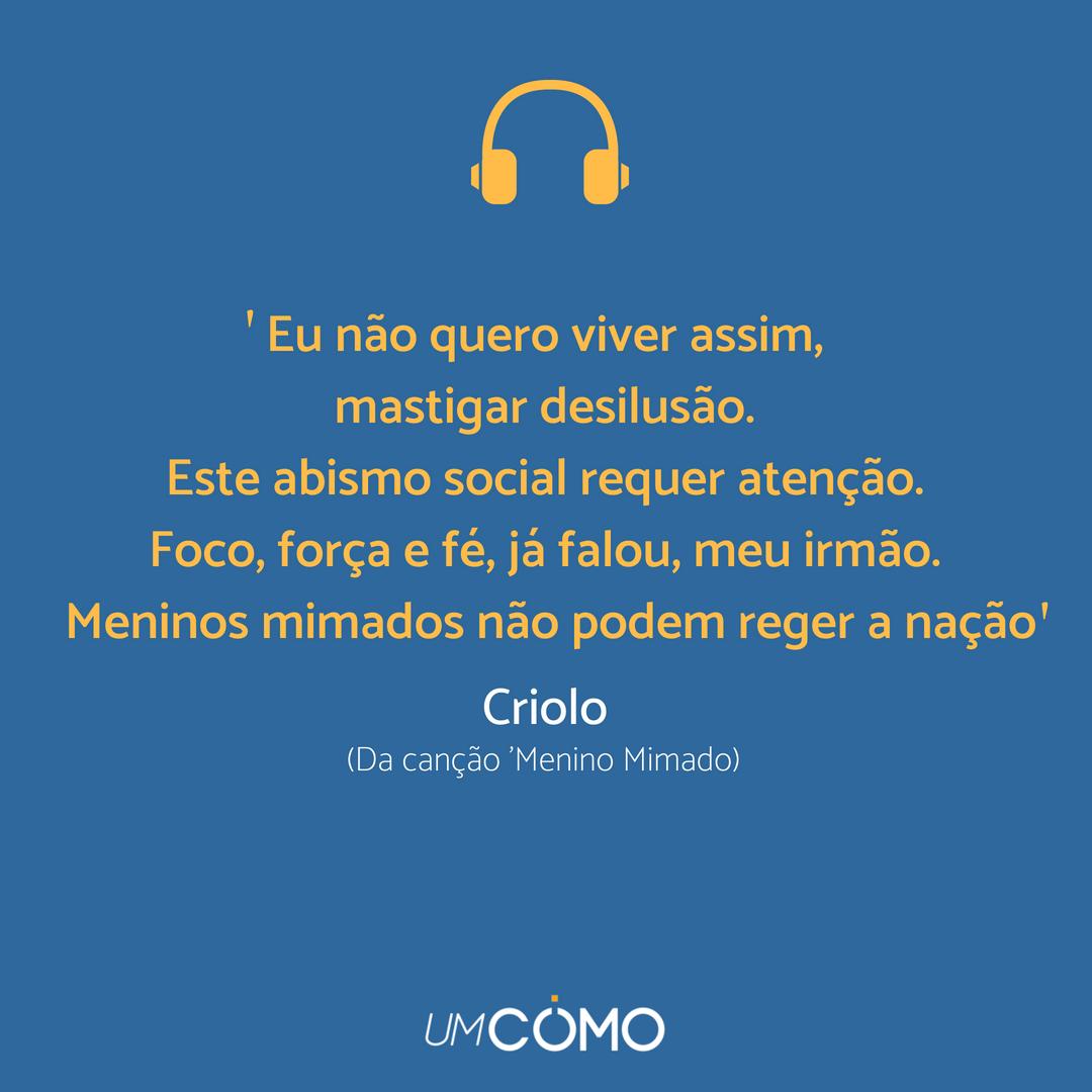 - 'Eu não quero viver assim, mastigar desilusão. Este abismo social requer atenção. Foco, força e fé, já falou meu irmão. Meninos mimados não podem reger a nação' - Menino Mimado