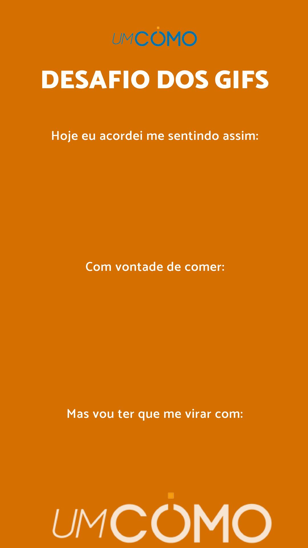 Para deixar o template pronto nós fizemos o desafio do gif com 'Hoje eu acordei me sentindo...', mas é claro que você pode adaptar para o que for mais conveniente e o que a sua criatividade permitir. Com a variedade de gifs no app essa brincadeira para Instagram pode ser muito divertida e mostrar resultados inesperados!