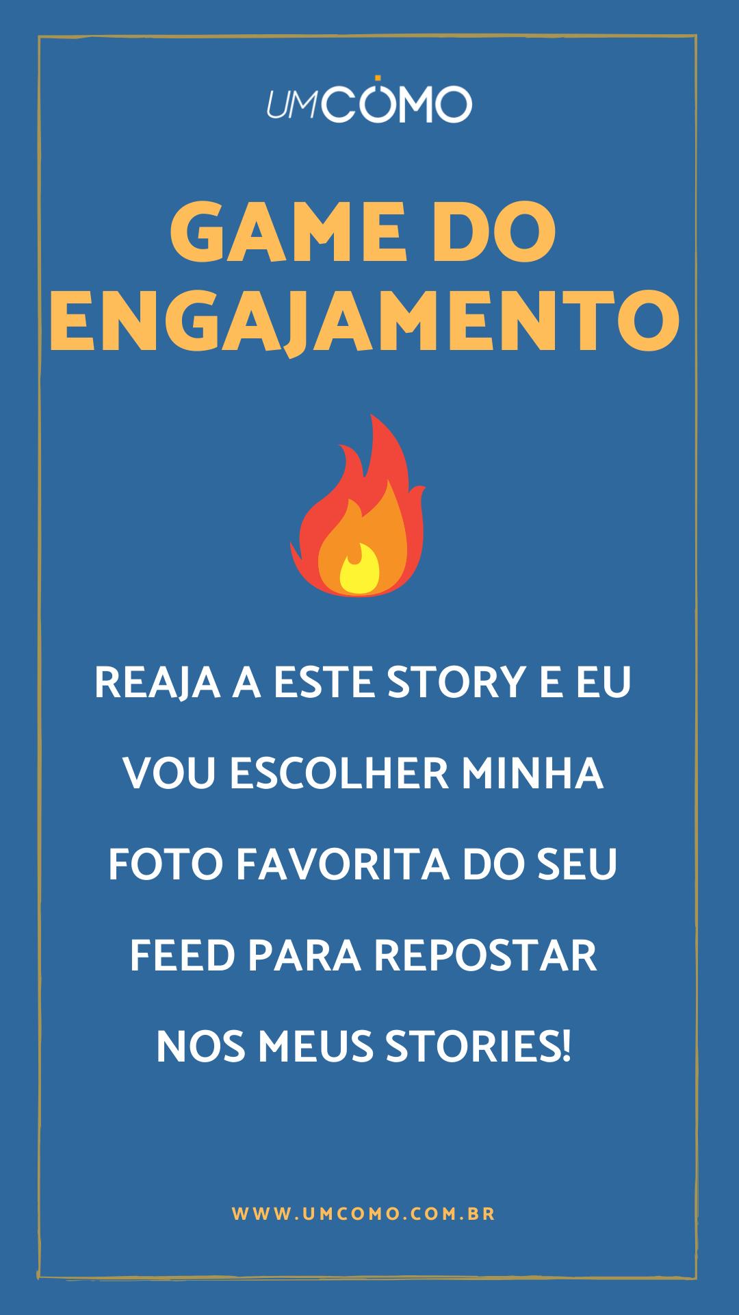 Nesta brincadeira para stories, você deverá postar o template abaixo e, então, escolher sua foto favorita do feed de todos que reagirem ao post. O Game do Engajamento é legal pois pode fazer com que seus seguidores conheçam perfis interessantes, além disso, também ajuda seus amigos a ganharem novos seguidores e a terem uma melhor divulgação de suas postagens, além disso, ele tem ainda um outro lado positivo.