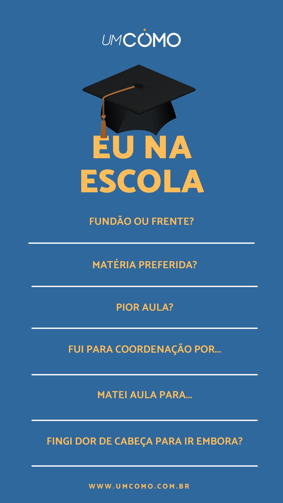 Se você saiu da escola já há um tempo, certamente tem amigos que fez depois desse período, e, consequentemente, também já pensou sobre como essa pessoa costumava ser um tempo atrás. Para descobrir isso sobre seus amigos e também falar um pouco sobre como você era na escola, que tal postar uma brincadeira sobre o assunto? Veja abaixo a brincadeira perfeita para essa viagem no tempo, valendo até mesmo enviar imagens para amigos que te conheceram anos depois.