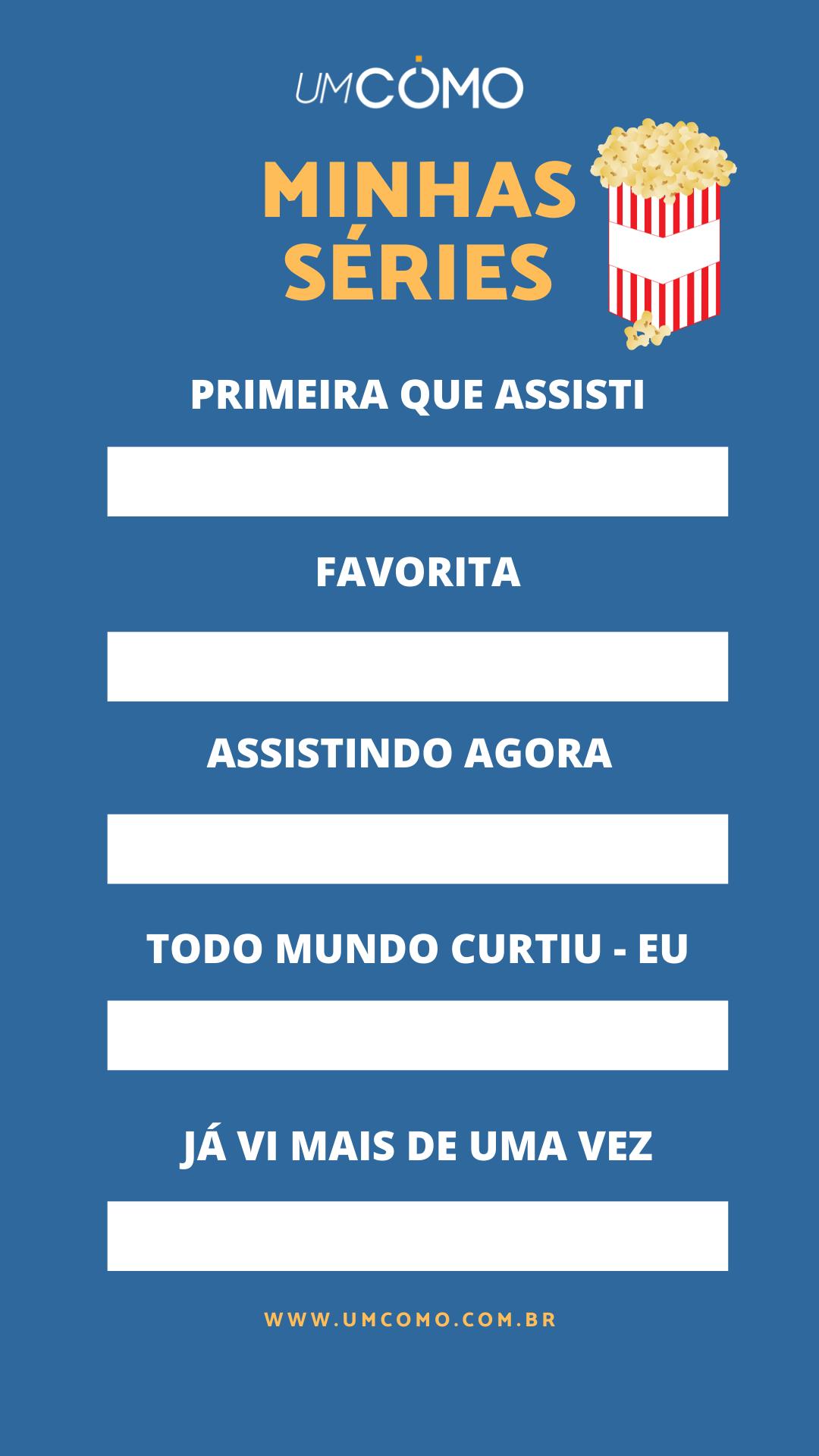 Para brincar, basta preencher cada um dos campos do template abaixo com a resposta para a pergunta feita, sendo essa uma ótima forma de descobrir pessoas que você tem como contato, que têm gostos em comum com você e que ambos não faziam a menor ideia. Poste agora mesmo essa brincadeira para status do Whatsapp e coloque a pipoca para estourar.