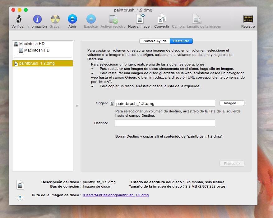 A segunda alternativa para abrir o arquivo dmg no Mac é para o caso de querer realizar alguma operação com esta imagem de disco, além de instalar o programa que contém. Assim, deverá abri-lo com Utilitário de discos.