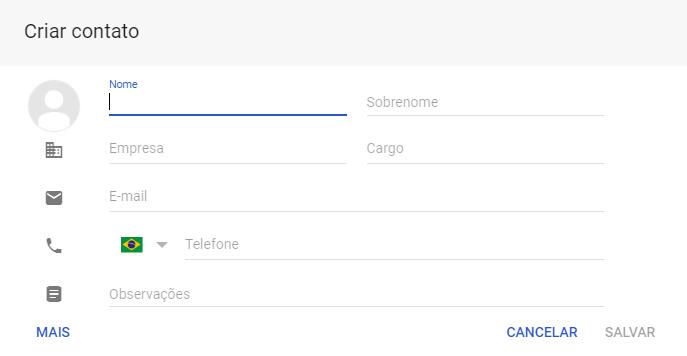 - Digite todas as informações necessárias do novo contato como nome, telefone e e-mail;