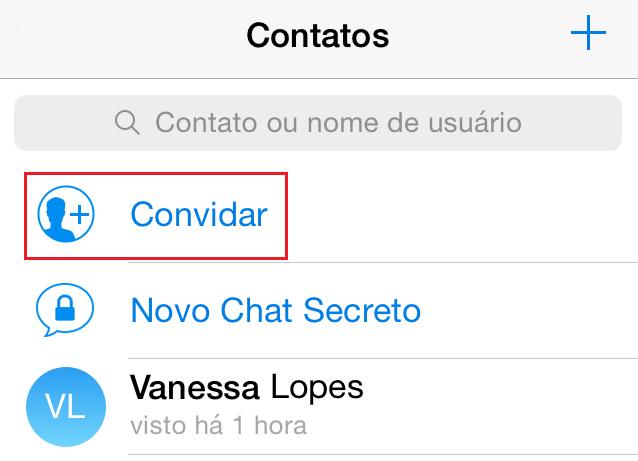 Para além de conseguir adicionar contatos manualmente no iPhone, você também pode convidar amigos que ainda não se tenham cadastrado no Telegram. Para isso, basta ir até à secção de Contatos novamente e clicar em "Convidar". Depois você pode enviar uma mensagem para o telefone dessa pessoa com um convite ou, até enviar um email ou partilhar no Facebook.