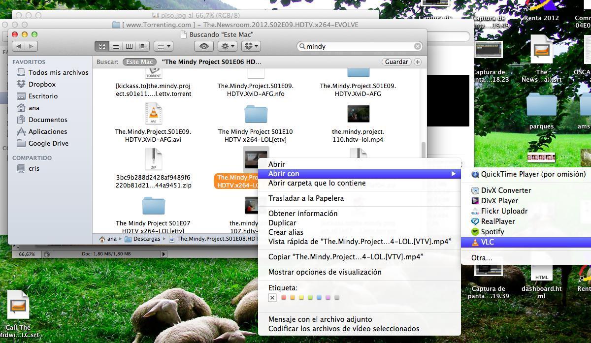 Você já tem todos os elementos necessários: VLC, o arquivo de vídeo e o arquivo com a legenda. Agora vá até ao arquivo de vídeo e clique com o botão direito (ou pressionando ctrl enquanto clica) sobre ele. Aparecerá um menu suspenso com várias opções.
