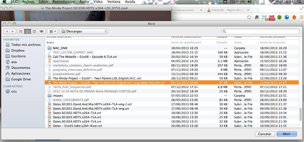 Aparecerá um navegador e nele poderá ver os arquivos guardados em seu computador. Clique sobre o arquivo.srt que procura e clique em "Abrir".