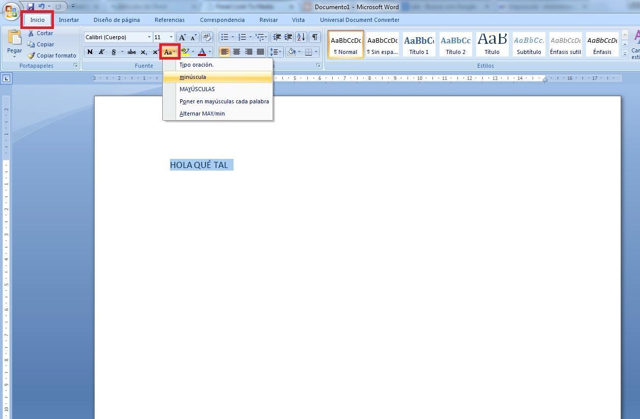 Alterar para minúsculas no Word