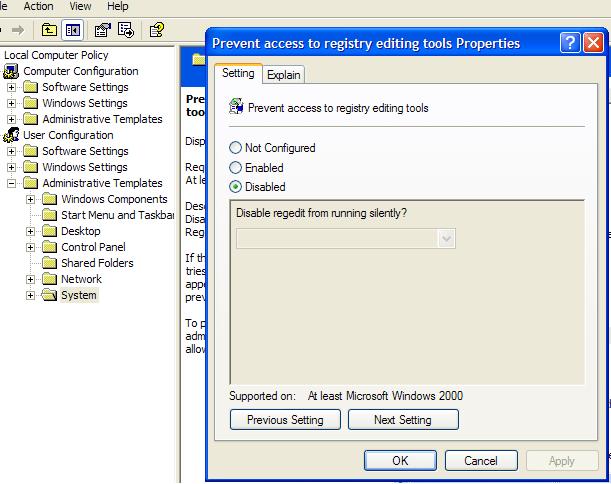 - Em sua área de trabalho, clique duas vezes em "Prevent Access to registry editing tools”.