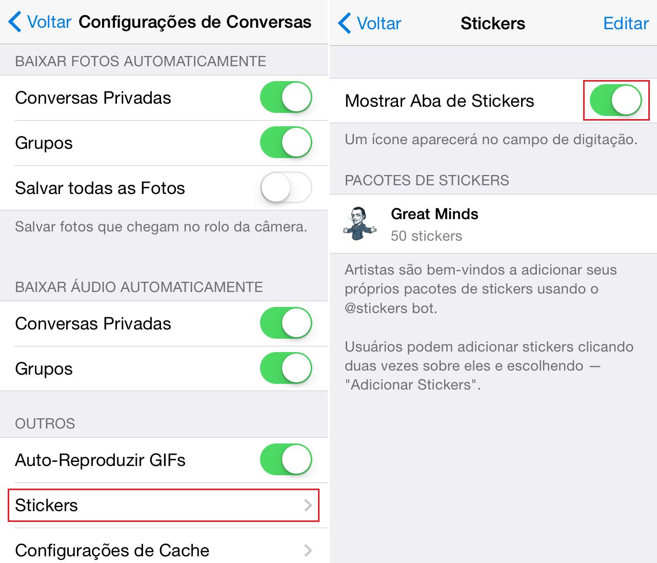 Como ativar os stickers do Telegram