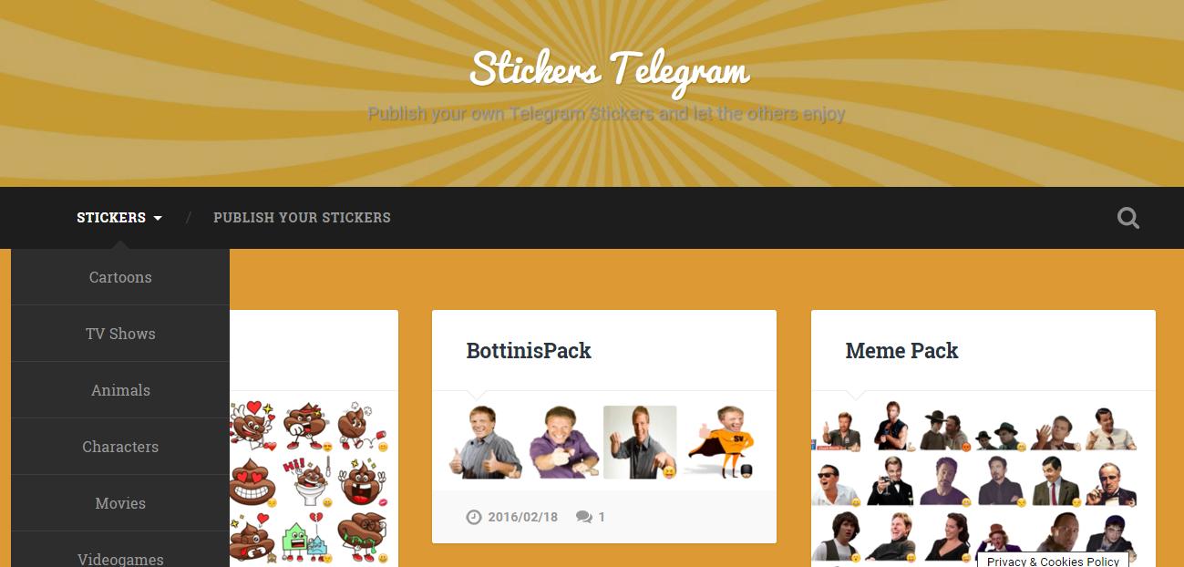 Para além destes stickers que o Telegram disponibiliza, você pode instalar mais pacotes com stickers diferentes. Vá ao site stickerstelegram.com e clique sobre o pacote de stickers que deseja fazer o download. Você pode buscar figurinhas pelas diferentes categorias existentes no menu Stickers. Depois é só clicar em "Add Stickers" para que este pacote seja instalado e adicionado ao seu Telegram.
