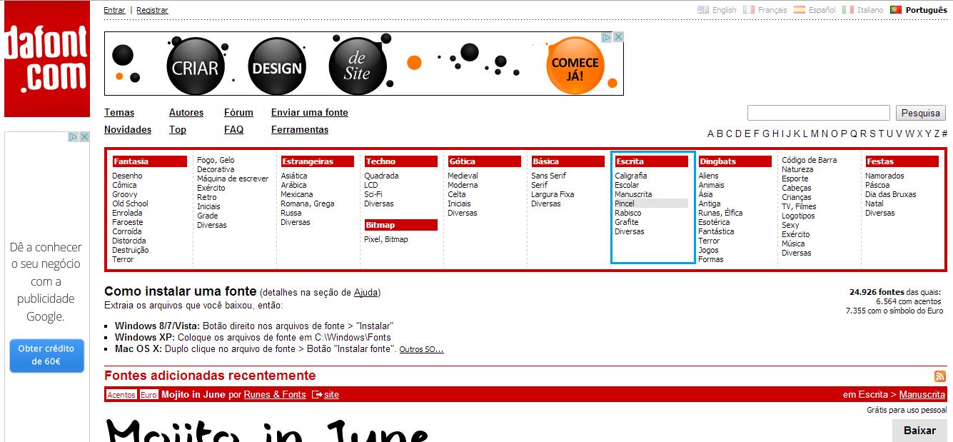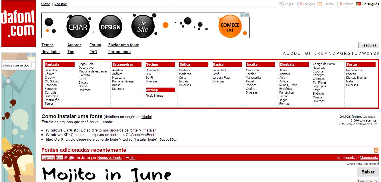 Lembre-se que este site é um dos mais usados para baixar fontes, já que conta com uma grande variedade e número de fontes gratuitas.