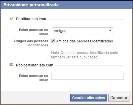 Aqui pode definir quem pode visualizar a sua foto, se público em geral, apenas amigos, apenas você ou definir uma privacidade personalizada. Na privacidade personalizada você define com quem quer partilhar a sua foto e com quem não quer. Você pode selecionar listas de contatos que tenha na rede social ou colocar o nome das pessoas individualmente. Não se preocupe que ao restringir a visualização de uma foto(s) ou álbum, esse seu amigo ou grupo de amigos não vai receber nenhuma notificação. O que acontece é que a foto que você publica nem sequer vai aparecer no feed de notícias dessa pessoa ou, caso essa pessoa acesse ao seu perfil não vai conseguir visualizar a foto ou clicar nela e ver os likes ou comentários.