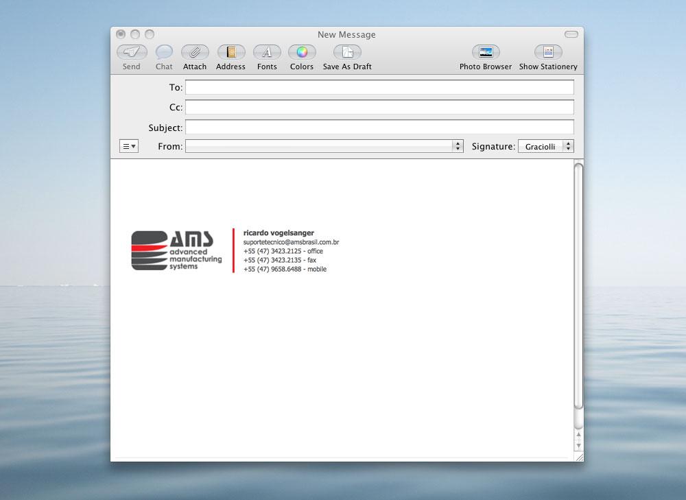 Já quem tem Airmail, usado em computadores Mac, deve criar um arquivo em HTML com a assinatura desejada e, depois, abri-lo pelo navegador Safari, clicar em File e, em seguida, em Save As. Renomeie o arquivo, selecione a opção WEB ARCHIVE (localizado na parte inferior da janela salvar) e, depois, abra o programa de e-mail, clique no menu Mail, escolha Preferences, clique na aba Assinaturas (Signatures), selecione a conta de e-mail, clique em “+” para adicionar uma nova assinatura, escreva algo e feche a janela.