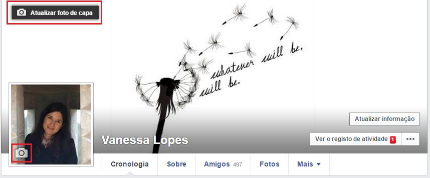 Existe também uma forma rápida e fácil de fazer o upload de uma foto de perfil ou de capa sem a necessidade de ir a álbum como explicamos anteriormente. Entre na sua página de Facebook e verá como junto a estas fotos de perfil principais aparece um símbolo, uma marca de água de uma câmera de fotos, se passar o cursor sobre ela aparecerá a opção de "Atualizar foto", clicando aqui poderá fazer o upload de uma nova ou mudar a que lhe aparece de forma rápida e fácil.