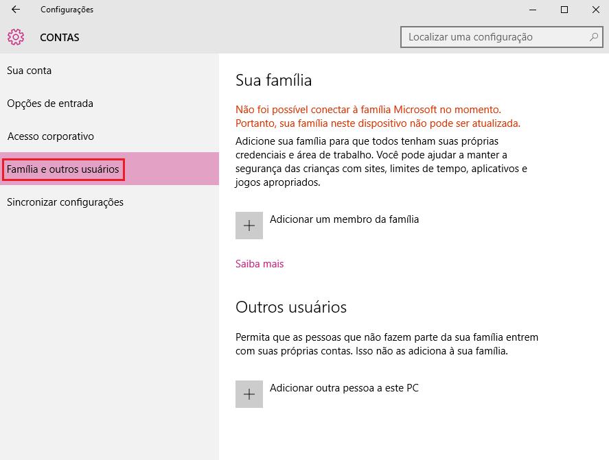 Em seguida, deverá entrar em Contas e depois em Família e outros usuários no menu lateral da esquerda.