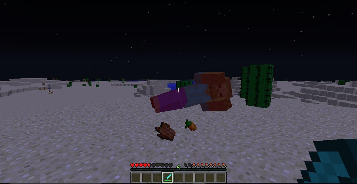 Depois de matar alguns zumbis deverá cair alguma cenoura como mostra na imagem. Caso não consiga encontrar nenhuma vila nas redondezas esta pode ser a sua melhor opção, as probabilidades de encontrar cenouras nos zumbis são pequenas, mas nada que torne a tarefa impossível.