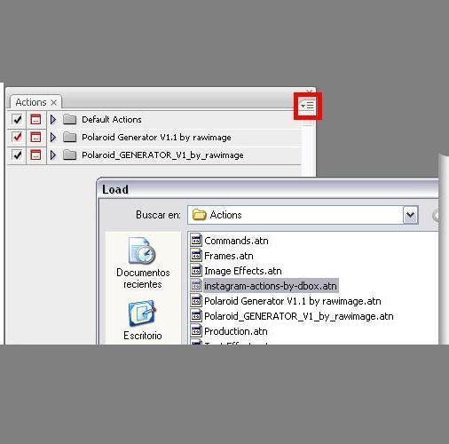 Execute o Photoshop, dirija-se ao painel de 'Ações' e pressione o ícone da direita para destacar o menu, como mostramos na imagem.