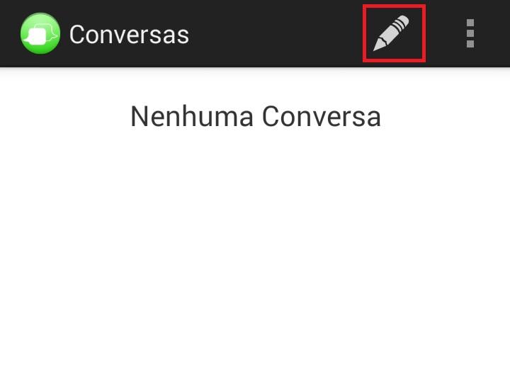 Para começar, baixe o app da App ou Play Store. Depois de instalado, abra e espere até a tela ficar igual à da imagem. Uma vez nesta tela, deverá pressionar sobre o ícone do lápis, que se encontra ao lado dos três pontinhos verticais no canto superior direito.