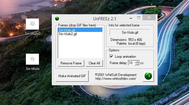 Por último clique no botão "Make animated GIF" do programa UnFREEz , nomeie e dê uma localização ao seu gif. Observe posteriormente como ficou a sua animação.