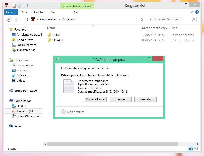 Este é o cenário: você introduziu um cartão de memória no seu computador, tentou transferir ou um ficheiro para lá e apareceu uma mensagem dizendo que "o disco está protegido contra escrita". Isso significa que o cartão de memória está bloqueado.
