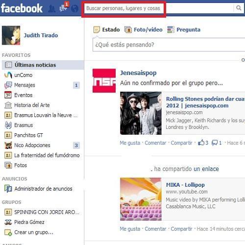 Utilize a pesquisa, situada na parte superior da página principal da rede social, para procurar a pessoa que pretende adicionar através do seu nome e apelidos.