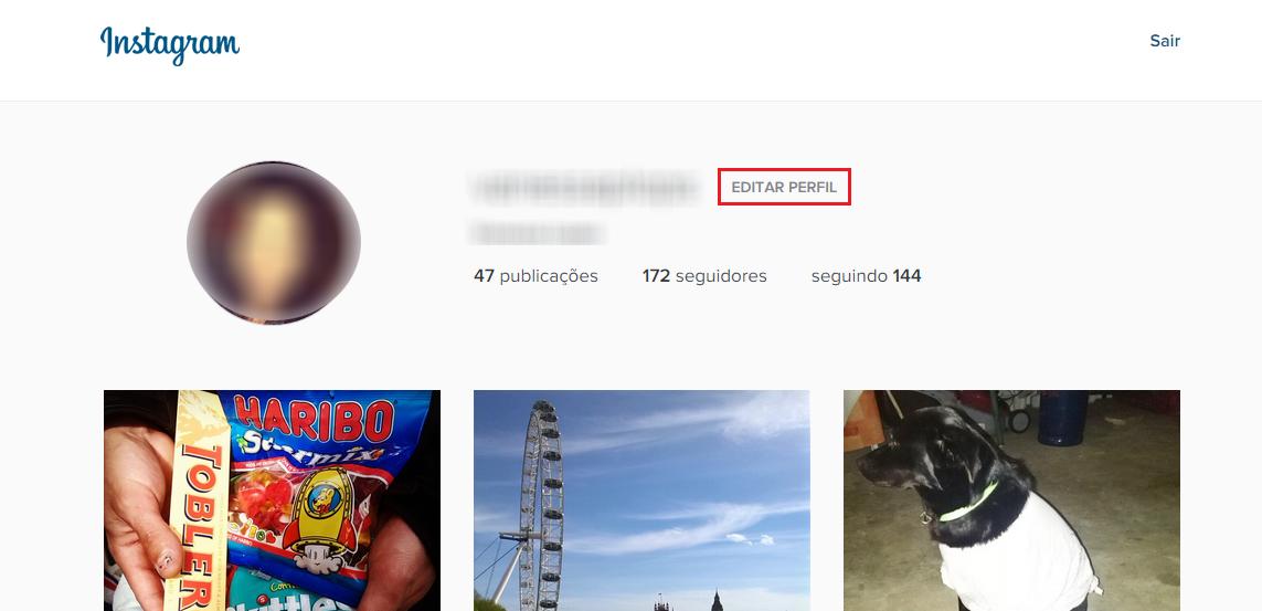 Uma vez dentro do seu perfil, deverá clicar em cima do seu nome de usuário e depois em "Editar perfil".