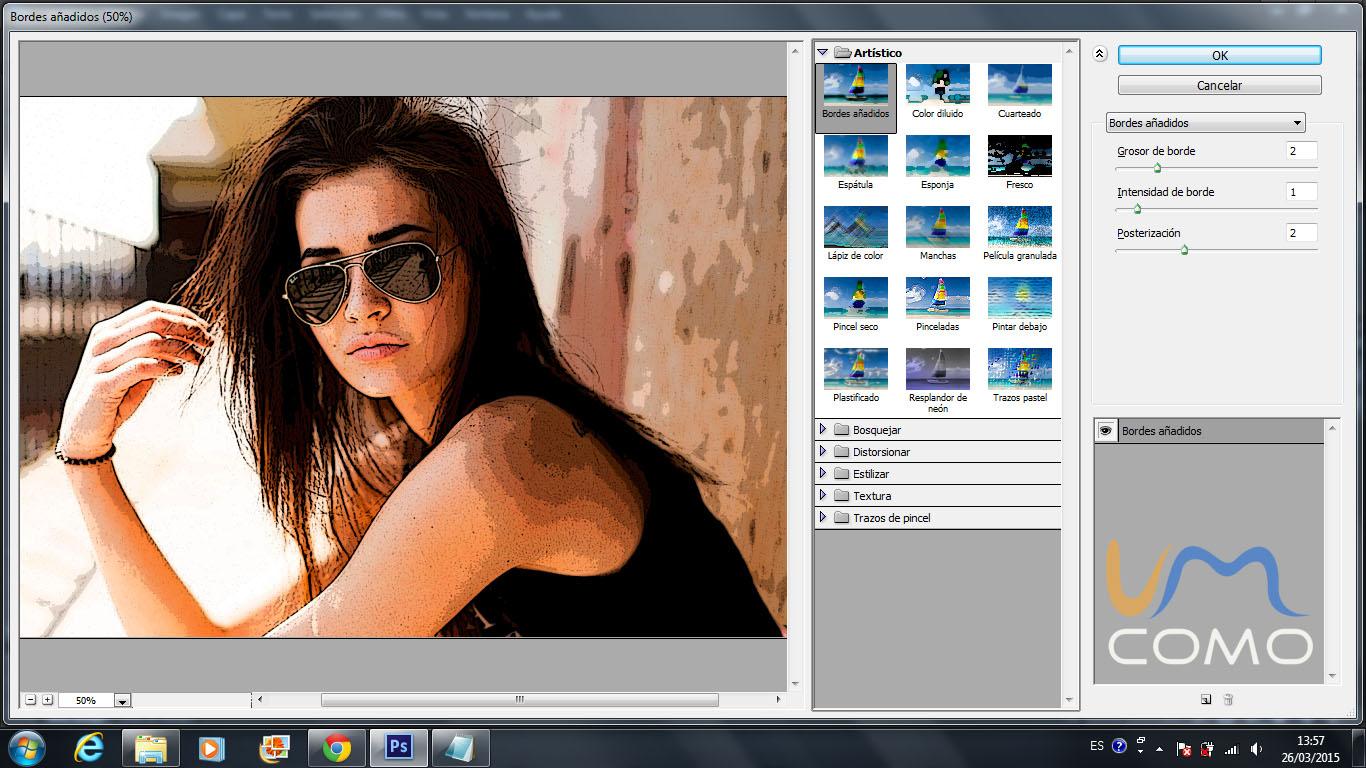 Volte a Filter, Filter Gallery, Artistic e clique na terceira caixinha, Dry Brush. Se quiser pode alterar os valores do efeito na caixa à direita. O seu efeito cartoon no Photoshop está concluído, esperamos que tenha gostado deste tutorial.