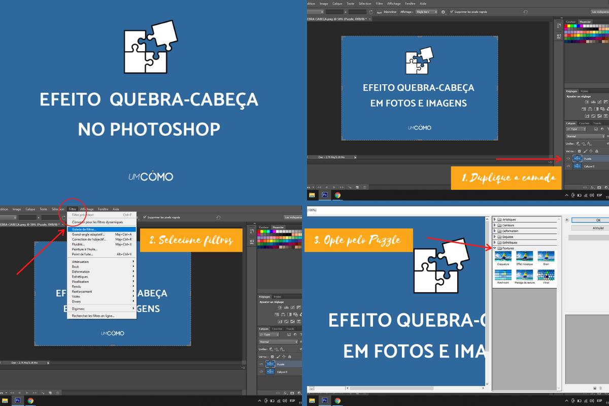Já se a ideia é usar o computador para fazer o efeito quebra-cabeça na foto, mas você quer usar um programa mais confiável e você tem acesso ao Photoshop, você pode utilizá-lo de uma maneira simples para transformar sua foto comum em quebra-cabeça. Se você manja do programa, siga estes passos para conseguir o efeito: