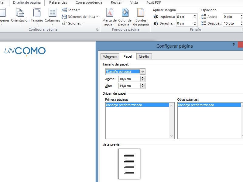 - Primeiro, você precisará configurar a página para alterar o tamanho das folhas, bem como sua orientação, margens, etc. Para fazer isso, basta abrir o Word e ir para "Layout da página", onde você pode acessar as opções de "margens", "orientação", "tamanho" etc. Aqui no umCOMO, recomendamos que você aposte em criar folhetos econômicos, de tamanho moderado, com as dimensões 10,5 x 14,8. Se você deseja criar folhetos grandes, pode optar por indicar um tamanho maior, como 21 x 29,7, por exemplo.