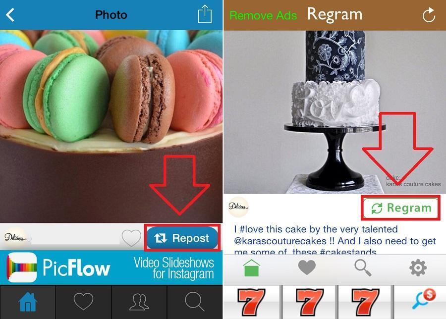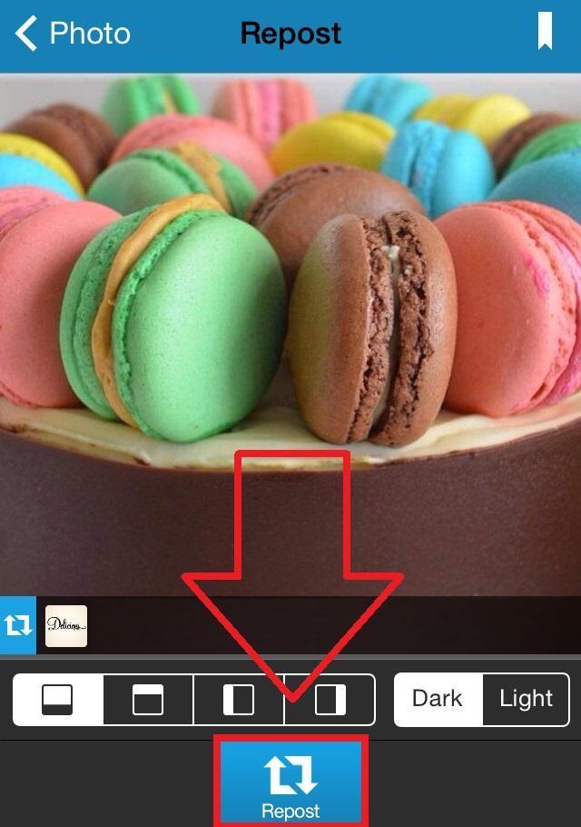 Uma vez feito isto, você verá que aparecem as imagens das pessoas que você segue no Instagram. Simplesmente selecione a fotografia que quer compartilhar e clique em 'Repost' ou 'Regram', dependendo do aplicativo você utilizará um termo ou o outro. Dependendo do aplicativo que tiver baixado, ele oferecerá a você a possibilidade de compartilhar a foto só no Instagram ou também no Twitter, bem como alguns permitem fazer algumas modificações de edição.