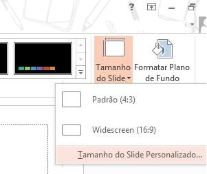 Abra um novo modelo de slide em branco e clique na opção Design. Aqui nós iremos mostrar no Power Point versão 2013.