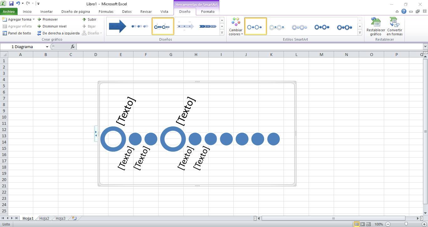 - A partir desta etapa você já terá sua linha do tempo, mas se quiser personalizá-la, também é possível. Vá para a guia Design, na barra de ferramentas e, na seção Smartart Styles, selecione Trocar Cores. Você também pode passar de quadrados em 2D para 3D, desta vez escolhendo Estilos Rápidos.