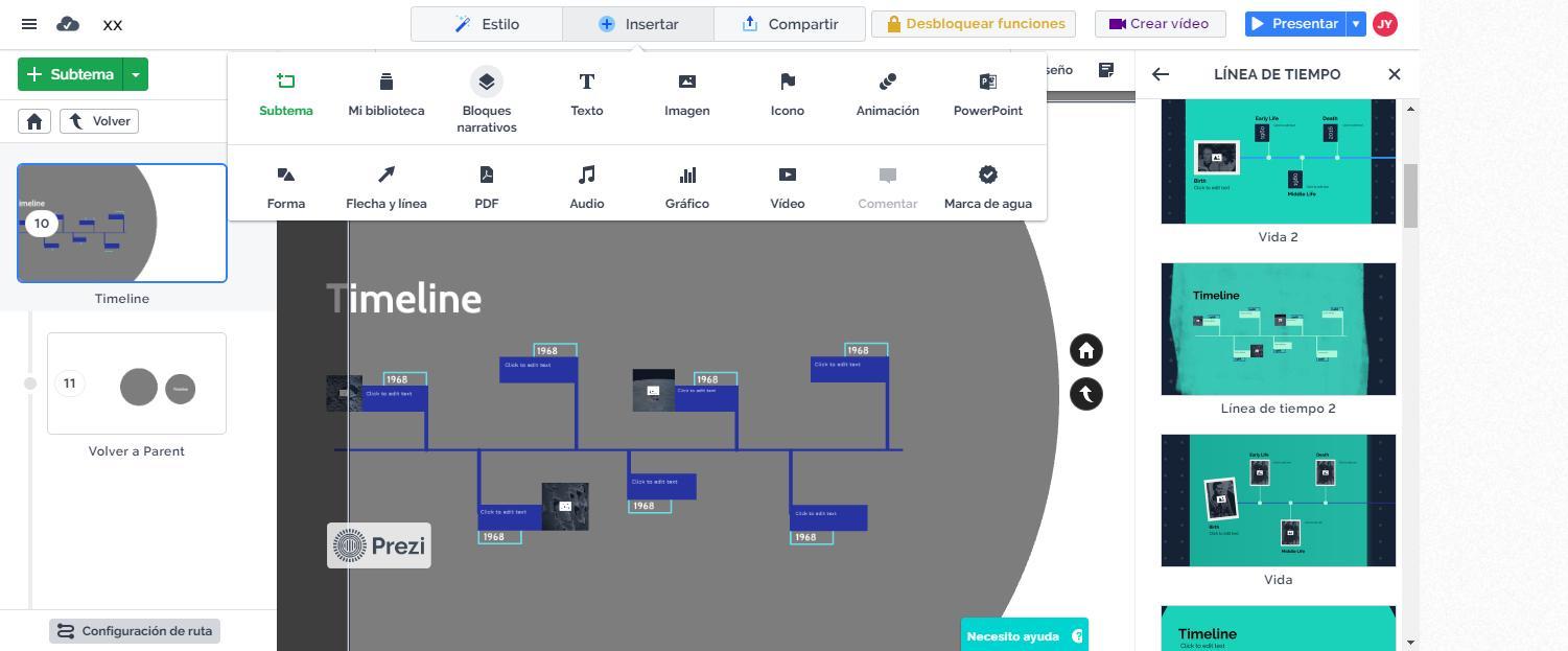 - Você poderá ver todos os modelos de linha do tempo que o Prezi oferece. Escolha o que você mais gosta e comece!