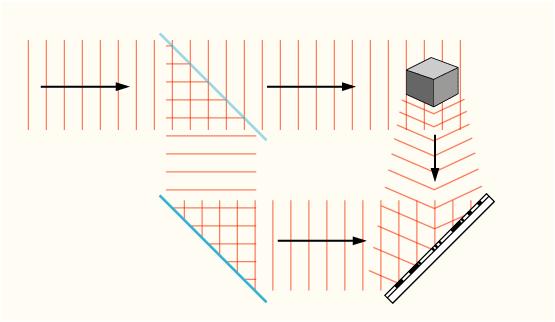 O raio é dividido através de um desviador ótico, e o raio que vai incidir no vídeo é refletivo por um vidro ótico refletor para que este feixe não se disperse. O outro feixe irá passar pelo desviador ótico e incidir no objeto para ser emitido no vídeo. Na imagem a baixo está o esquema em que pode tirar algumas dúvidas acerca deste método.