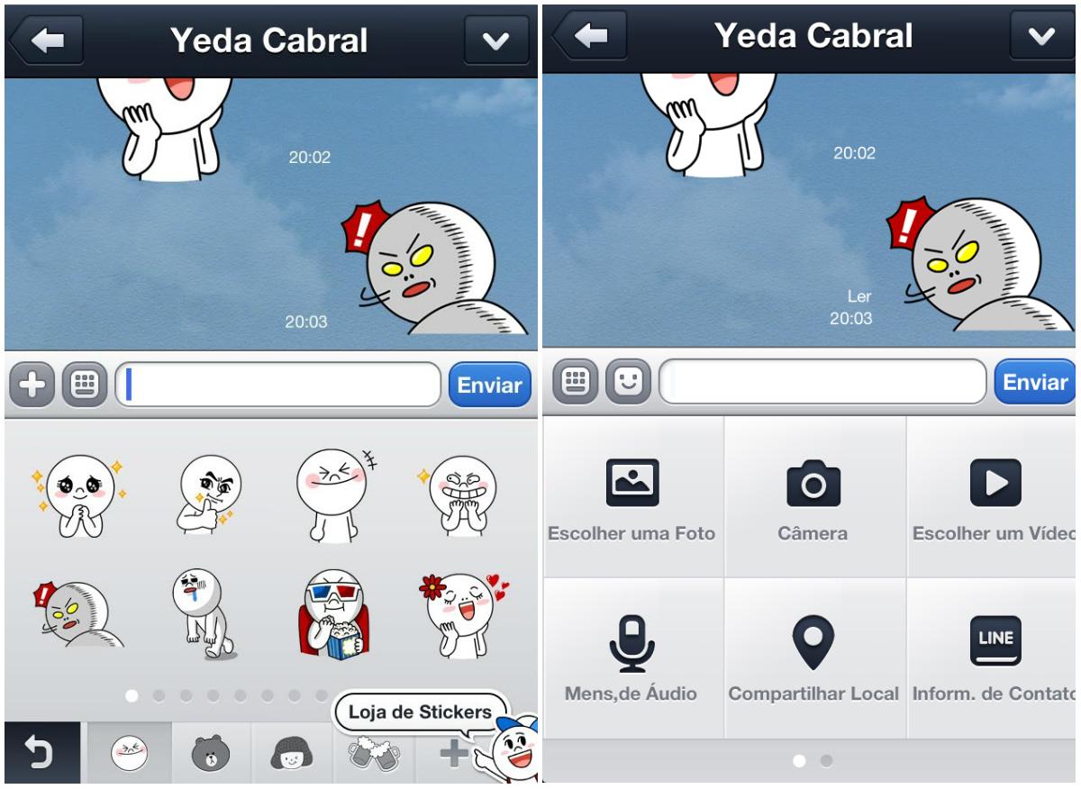 Destaca-se que você também poderá compartilhar fotografias, vídeos, mensagens de áudio, sua localização, contatos, LINE cards. Deverá fazê-lo a partir do menu do chat localizado junto à barra de texto onde você escreve.
