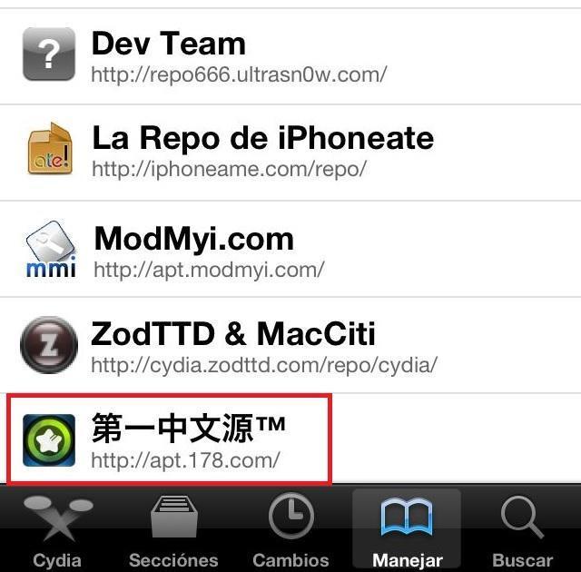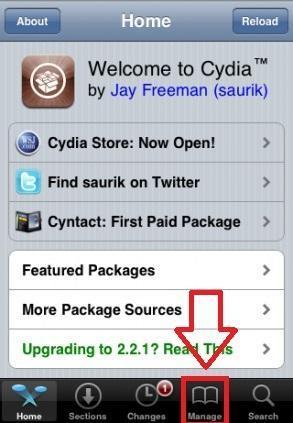 Agora que já sabe sua versão de iOS, o outro requisito que deve cumprir para instalar o AppSync é ter o Jailbreak instalado. Aqui encontrará uma lista com os Jailbreaks para os iOS. Se já o tem, vá a Cydia e clique sobre 'Manage', 'Gerenciar' ou Gestão', dependendo do idioma que tenha configurado. E, se for no iPad, vá a 'Fontes'.