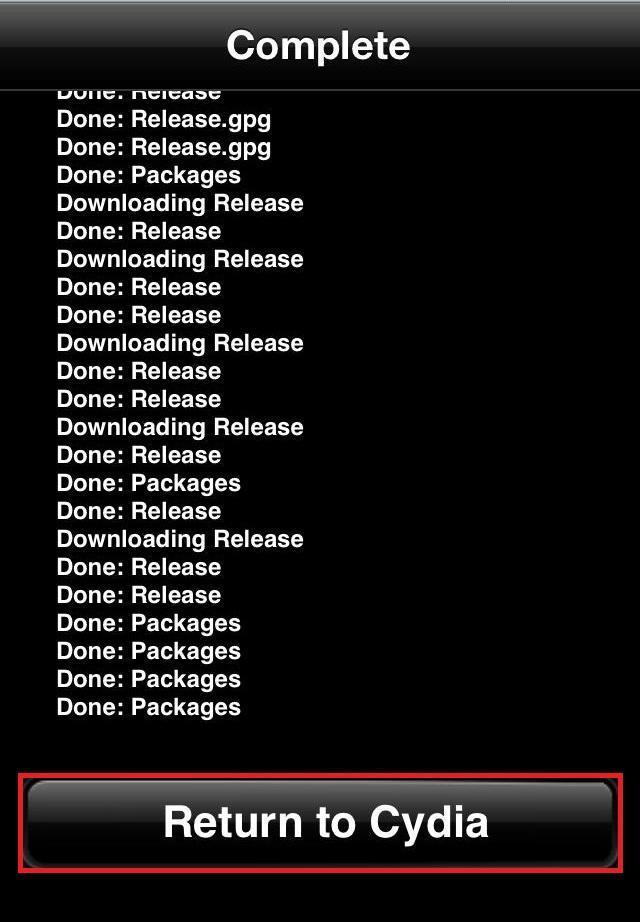Se aparecer uma janela de advertência, não se preocupe, pressione 'Adicionar de qualquer forma' e deixe que o processo de instalação seja concluído; pode durar alguns segundos. Quando tiver finalizado, clique em 'Return to Cydia'.