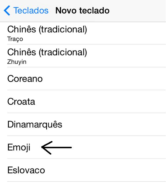 Procure pelo idioma "Emoji" e clique sobre ele. Quase que já tem instalado os ícones emoji no seu iPhone, falta-lhe muito pouco.