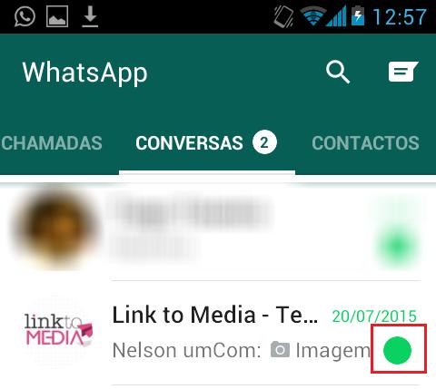 Feito isto, na lista de conversas verá como na parte direta da conversa que marcou como não lida aparecerá um círculo verde e na hora que receber mensagens o círculo também será dessa cor.
