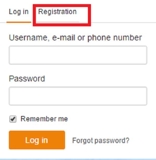 Agora que a sua página já está em inglês, é hora de se registrar. Repare na caixa de log in, busque e selecione a opção Registration.