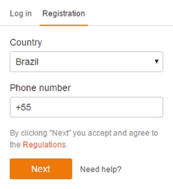 Agora, para se registrar no Odnoklassniki preencha o primeiro campo de dados com o seu país de origem e o segundo com o seu número de telefone com DDD. Ao apertar next, você automaticamente estará aceitando os termos e condições de uso do Odnoklassniki.
