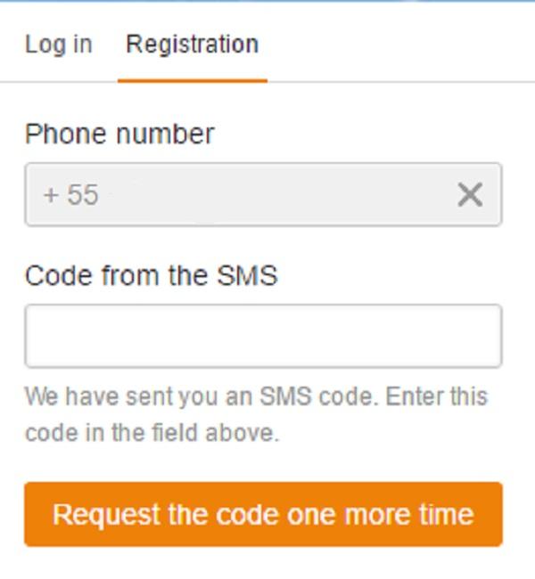 O próximo passo para se registrar no Odnoklassniki é confirmar sua inscrição com um código que deverá ser recebido via SMS pelo celular. Se o seu código não chegou selecione Request the code one more time, isso repetirá o pedido.