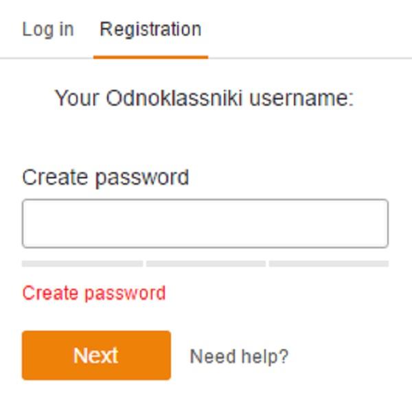 Agora crie uma senha de pelo menos 6 dígitos para se registrar no Odnoklassniki.
