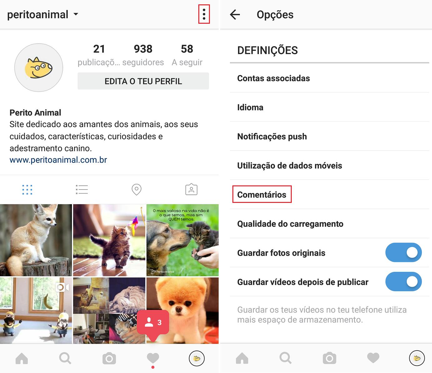 Após ter o app atualizado, deve abrir o Instagram e ir até ao seu perfil. De seguida, deverá clicar no ícone dos três pontos verticais e ir até à opção Comentários, que se encontra em Definições.