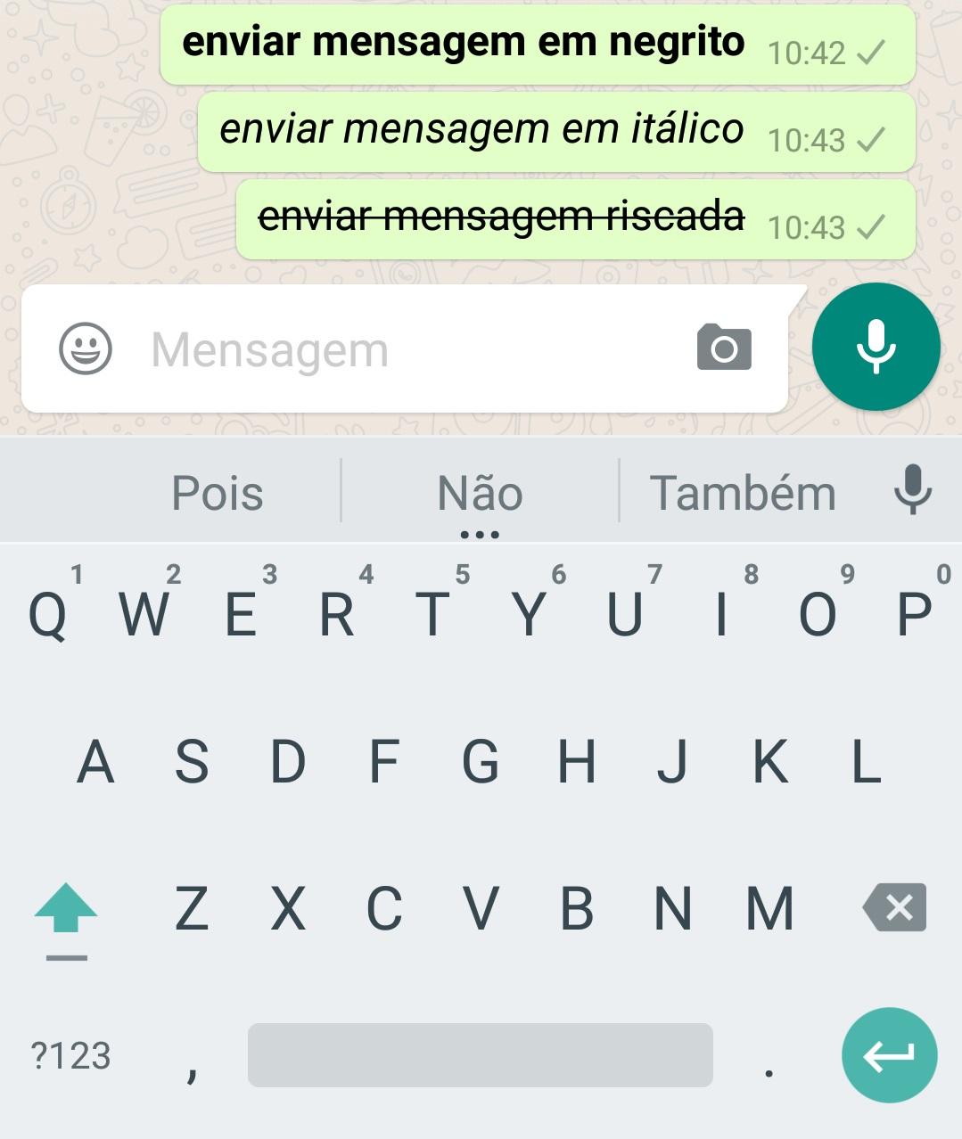 Atualmente no WhatsApp já é possível mudar os formatos da letra, colocando por exemplo negritos, itálico ou riscado no app. É uma nova funcionalidade que permite ao usuários destacar algumas mensagens que enviar e usar um formato de texto mais ajustado e personalizado.