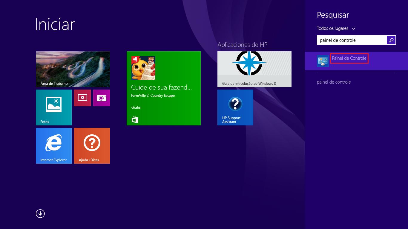 A primeira coisa que deverá fazer para trocar o DNS no Windows 8 é acessar o Painel de Controle; para isso, vá ao menu Iniciar e faça uma busca através da lupa na parte superior direita ou diretamente comece a escrever "painel...".