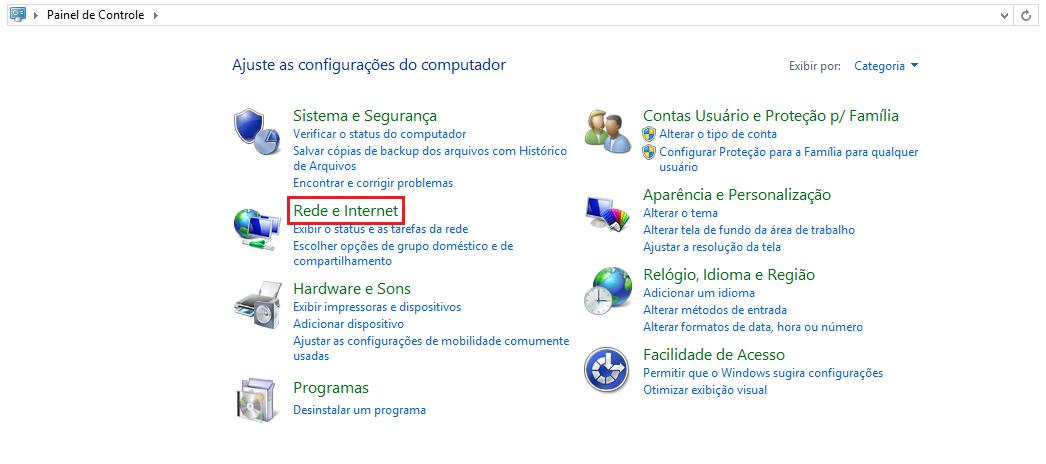 Quando estiver no painel de controle, clique sobre a opção "Redes e Internet" através da qual poderá modificar diferentes parâmetros das suas conexões, sejam elas com ou sem fio.