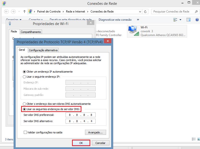 - Servidor DNS alternativo: 8.8.4.4 (DNS secundário)