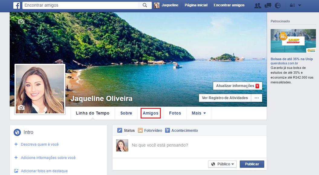 Uma vez na sua conta, deverá ir à página do seu perfil e clicar na aba de Amigos que encontrará no menu embaixo da foto de capa.